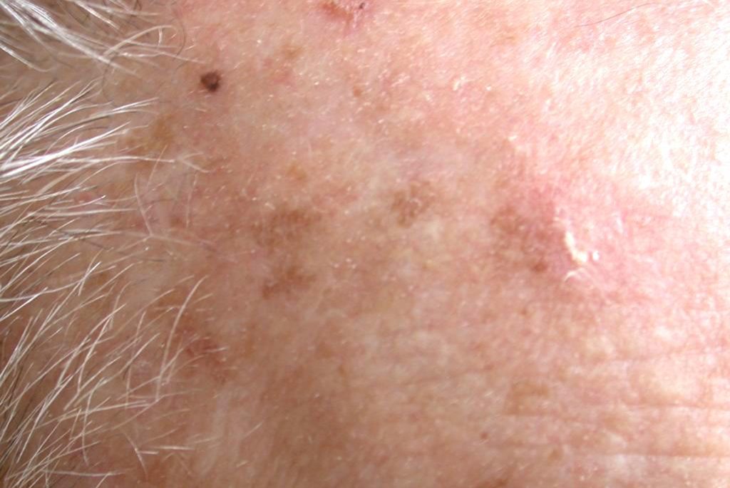 Les kératoses actiniques se traduisent par des lésions rouges et crouteuses ,rugueuses au toucher, situées principalement dans les zones exposées au soleil.